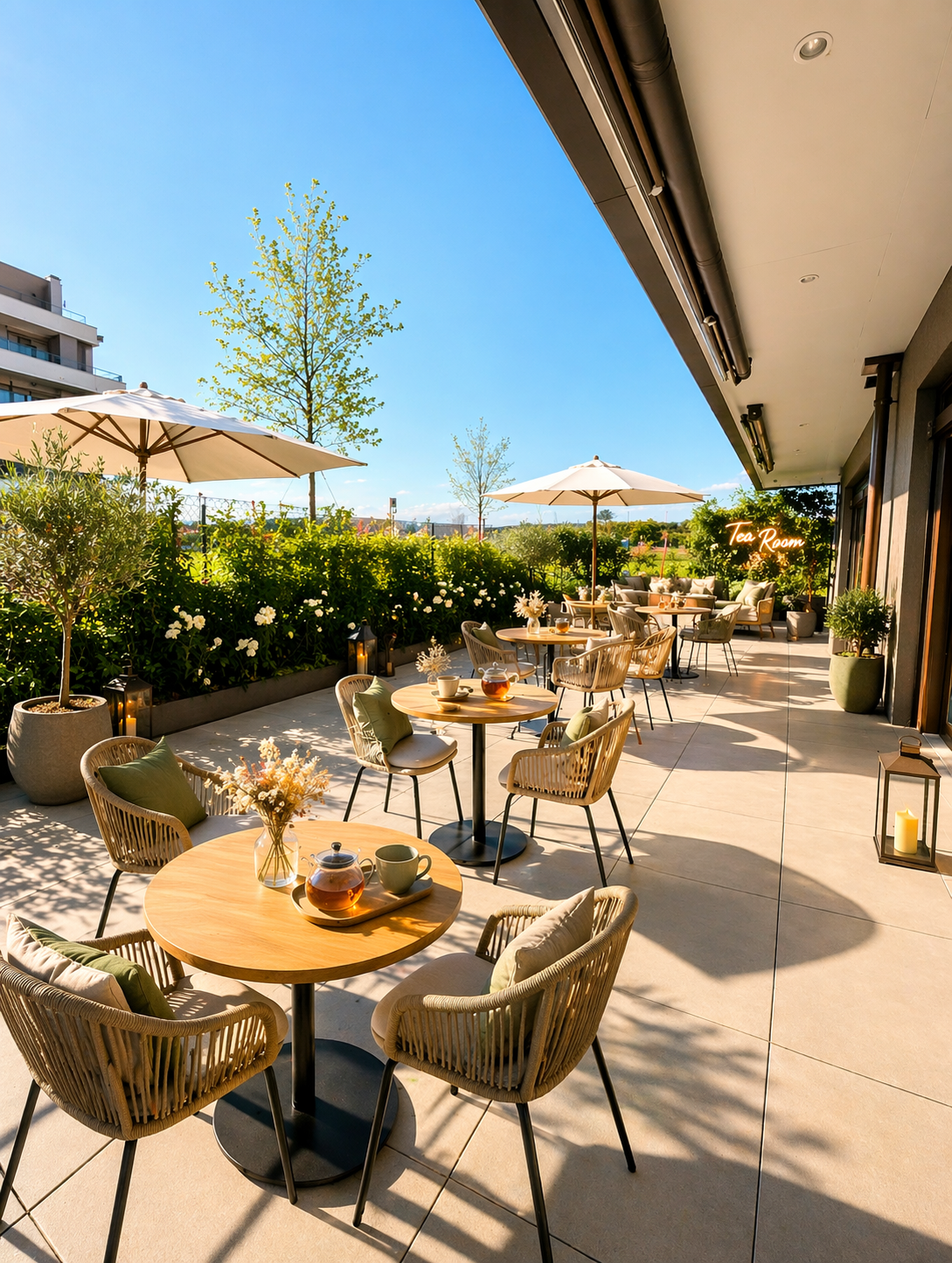 - Terrasse ensoleillée, exploitable selon votre activité