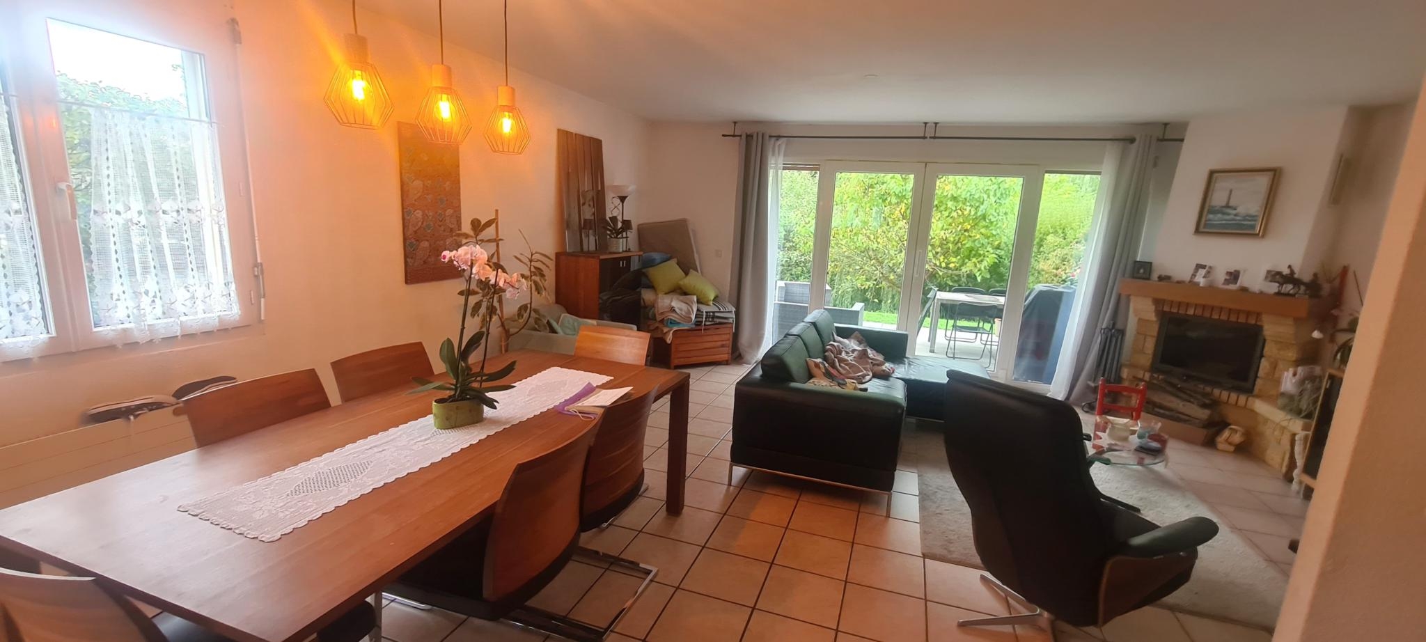 - rez-de-chaussée : hall d'entrée, un WC visiteur avec lavabo et douche, une cuisine équipée aménagée ouverte sur le salon-séjour, une salle à manger avec cheminée, accès terrasse.